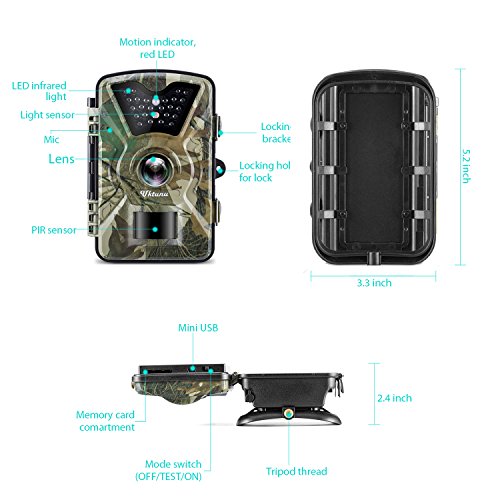 Si estás buscando para la parte superior recomendada Cámaras de caza, entonces UKTUNU Cámara de Caza 12MP 1080P Infrarrojos Nocturna Camaras IP66 Seguridad Hogar Mascota Animal Trail Cámara con 16GB SD Card es nuestra sugerencia. Muchas buenas críticas ya demuestran la calidad de este producto. Y también vas a satisfacer con el costo razonable en caso de que se compare con el otro artículo similar que está en Internet. Si desea conocer más a fondo estos productos, a continuación se detallan sus características principales.
